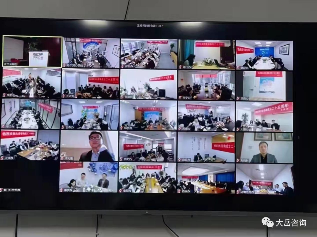 2021年11月5日,大岳咨詢25周年司慶活動(dòng)在北京總部和全國27個(gè)分支機(jī)構(gòu)同步舉行。受疫情影響,公司為確保全體同事人身安全,采用線上“云司慶”的形式舉辦本次活動(dòng)。